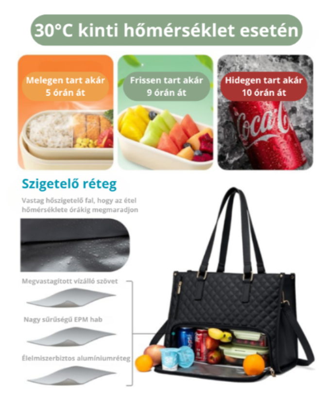 Fedezze fel a stílus és a funkcionalitás tökéletes kombinációját ezzel az elegáns táskával, amely stílusosan szállítja mindennapi kellékeit, miközben hűvösen tartja az egészséges ételeket.